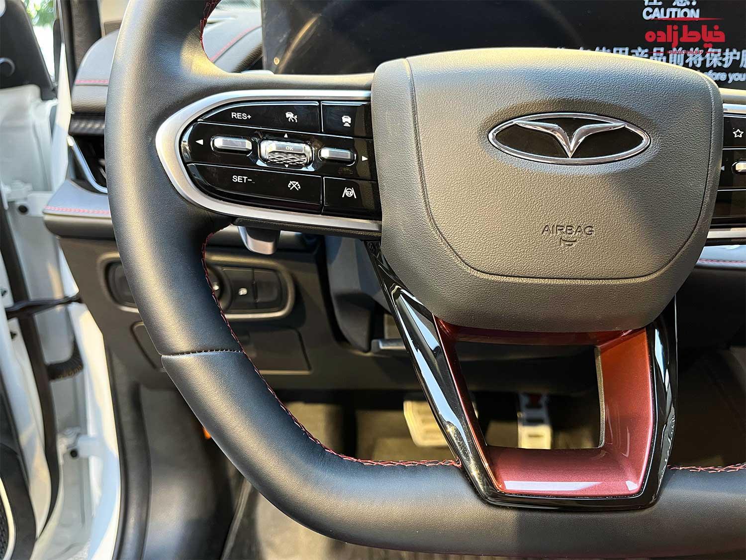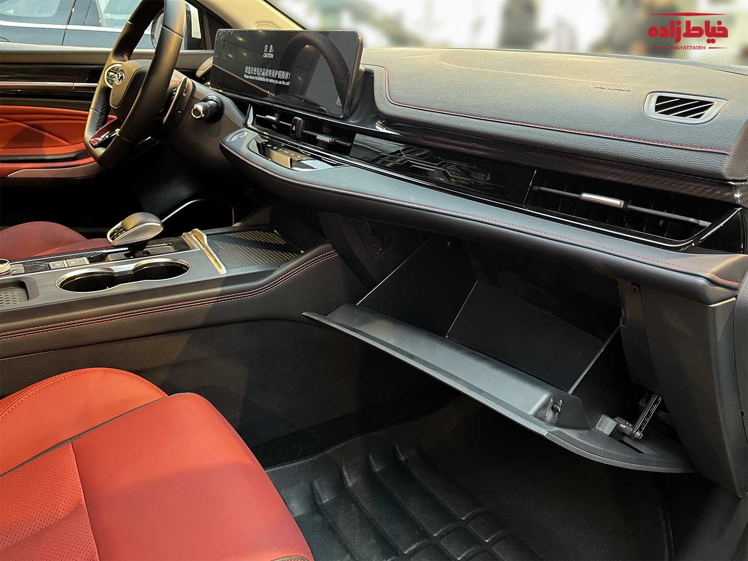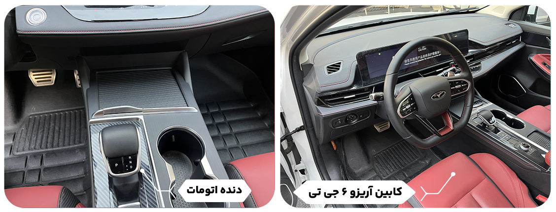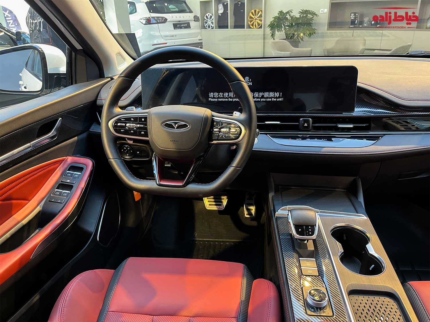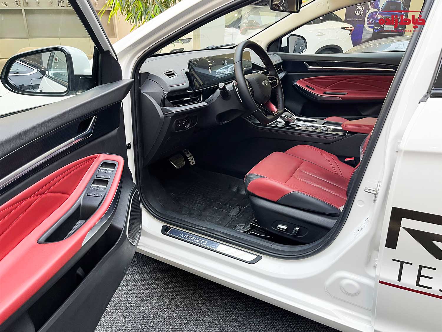 در پشت فرمان یک نمایشگر دوگانه 20 اینچی را مشاهده می کنید و شامل یک کلاستر 10 اینچی است که برای کیلومتر خودرو تعبیه شده و در کنار آن صفحه نمایش 10 اینچی مالتی مدیا قرار دارد. آریزو 6 جی تی دارای سانروف برقی و دنده اتومات است.